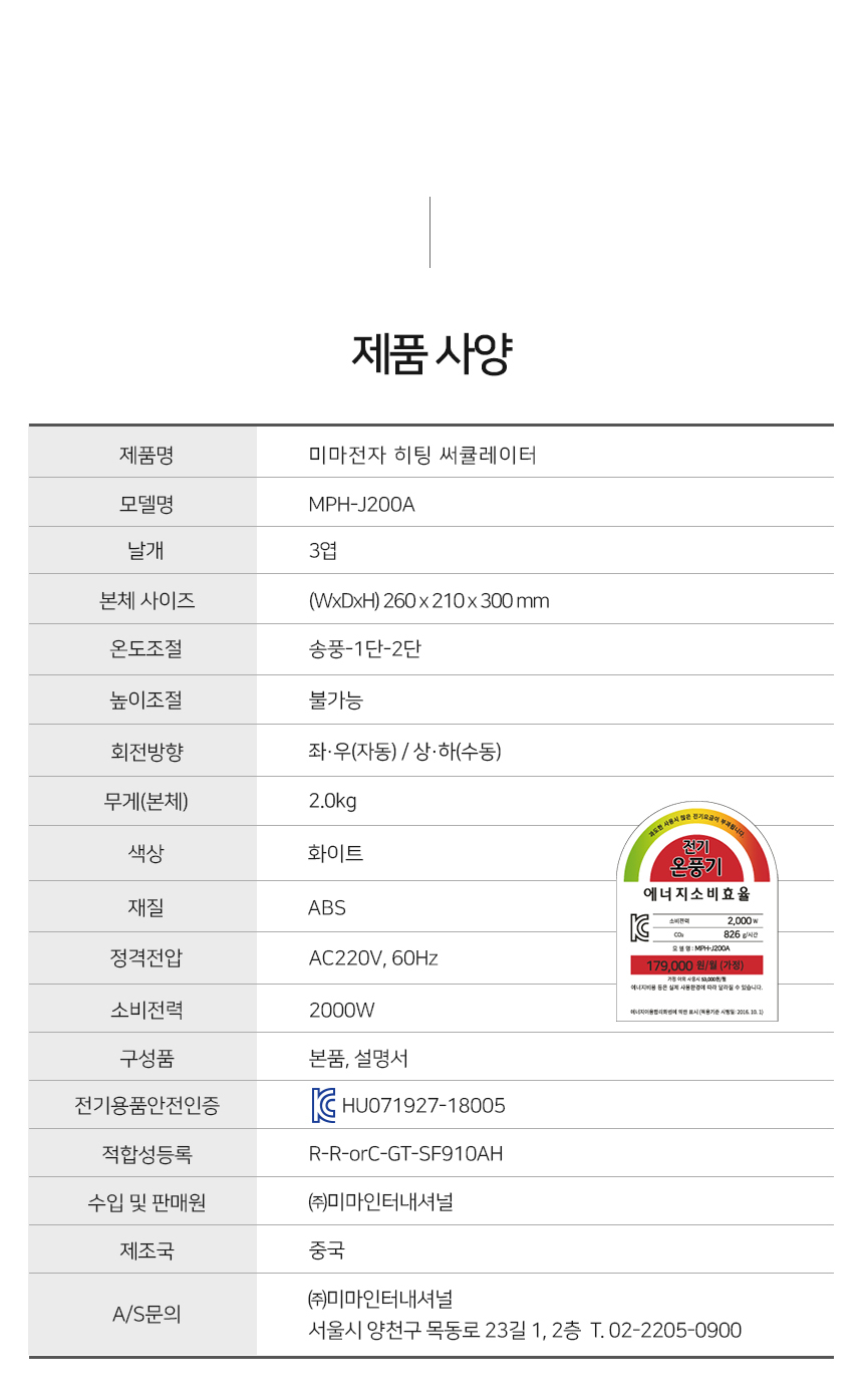 미마전자 MPH-J200A 온도조절 팬히터